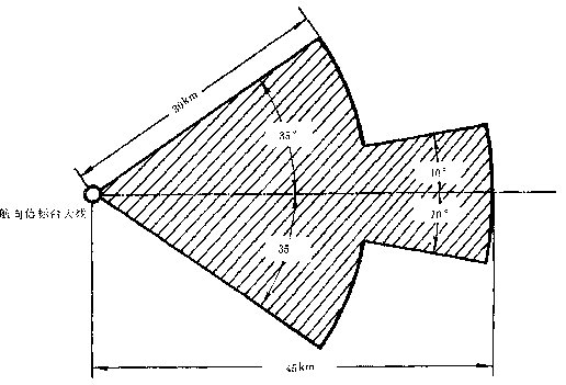 圖1 航向信標臺覆蓋區 4.1.4 航向信標臺覆蓋區內,最低信號場強為40μV/m(32dB)。